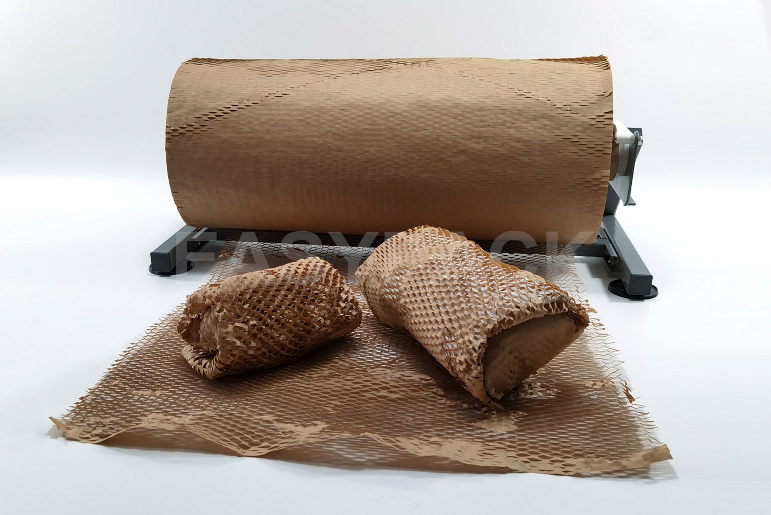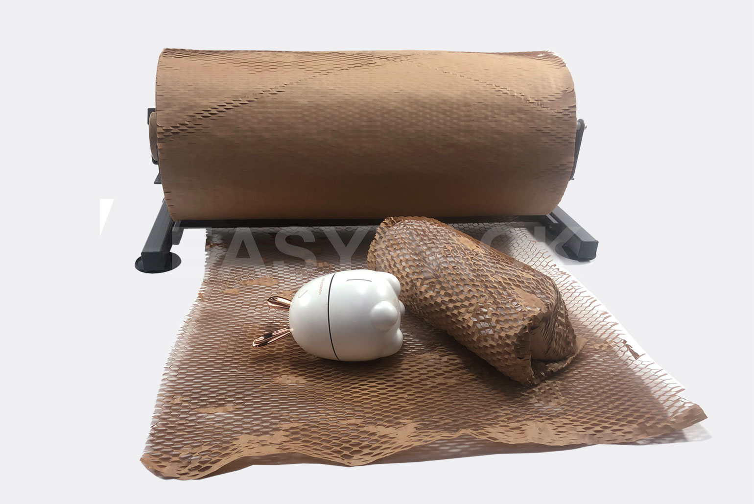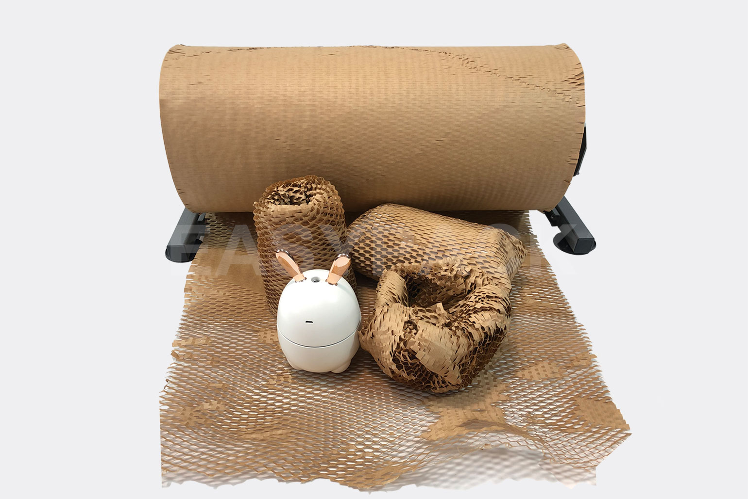 蜂窩紙:3D六角蜂窩狀的牛皮紙卷,經(jīng)過(guò)拉伸后呈現(xiàn)立體蜂窩結(jié)構(gòu)的紙襯墊,在包裹物品后能產(chǎn)生良好的緩沖防震效果